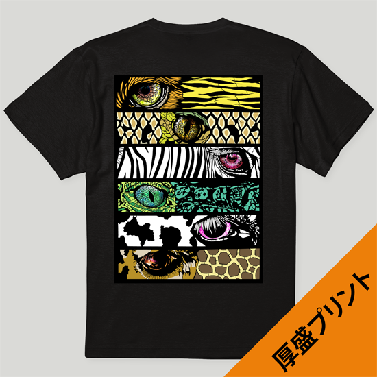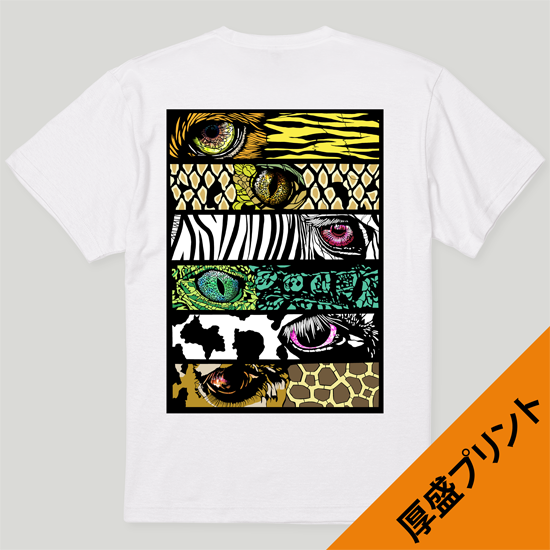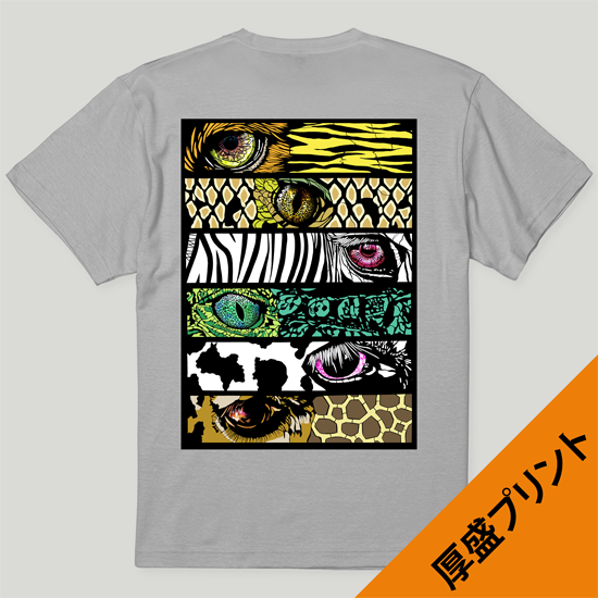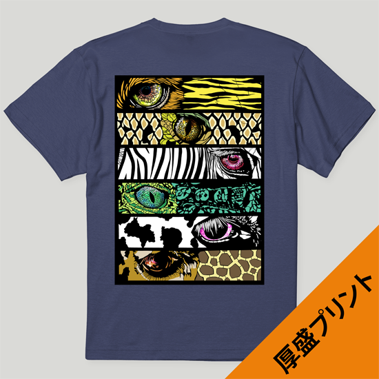 _切形Tシャツ_厚盛プリント (ボディ白, 黒, グレー, インディゴ, 4種類有り)